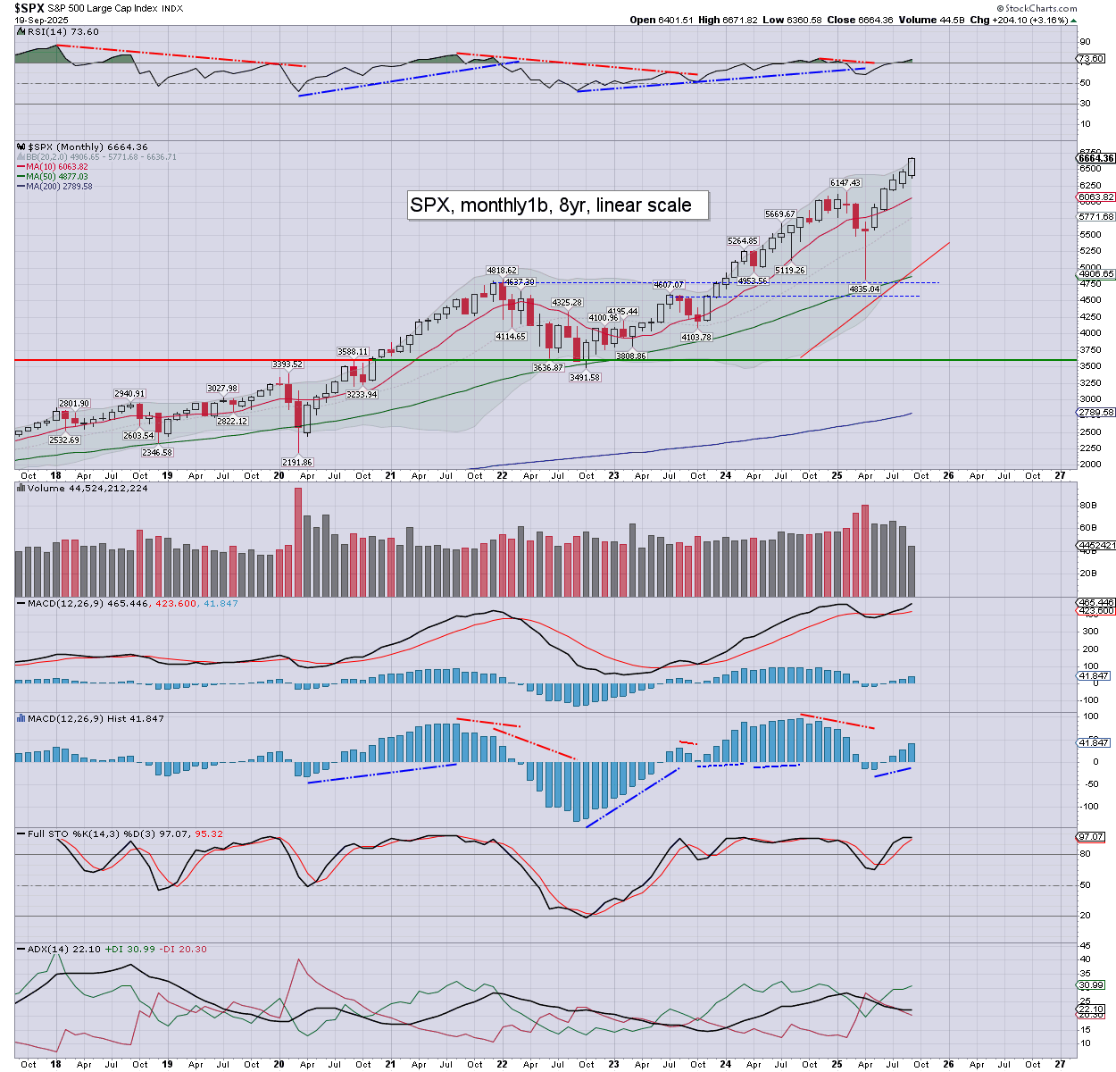 With seven trading days left of Sept’/Q3, the SPX is currently +204pts (3.2%) at 6664, having printed a new hist’ high of 6671. Monthly momentum is increasingly positive, offering ZERO sign of a m/t ceiling/turn.