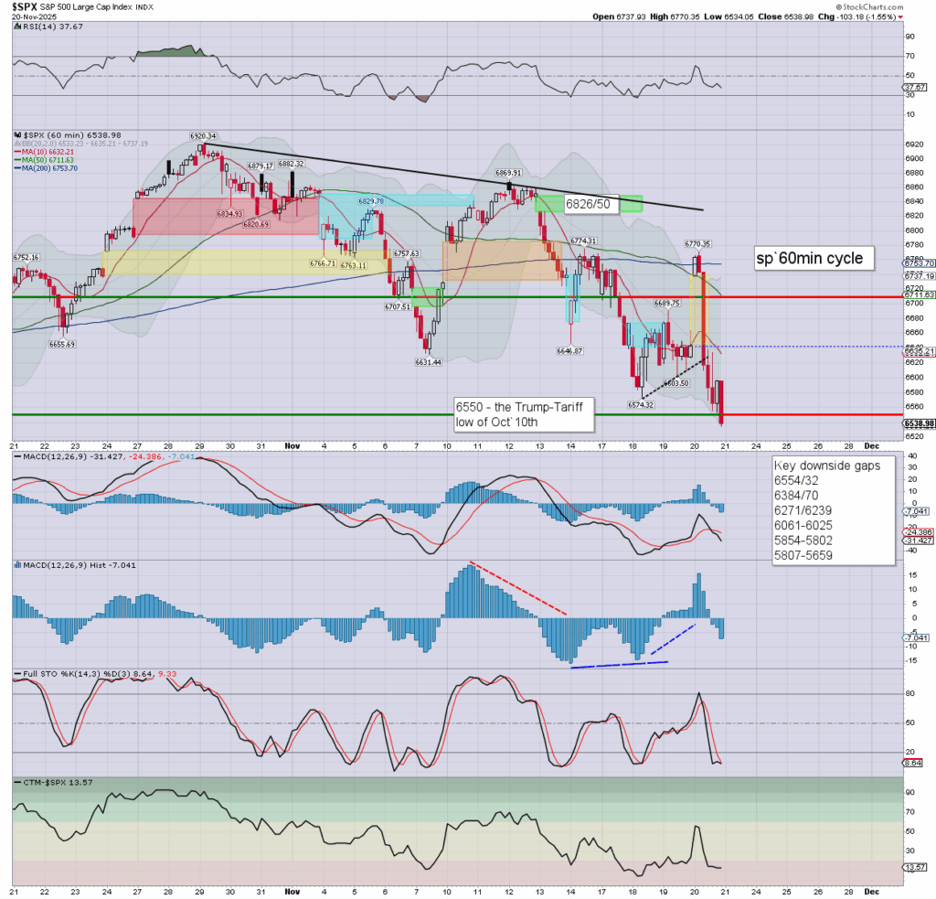 closing hour action: another swing lower, taking out the Trump-tariff low of 6550. S/t momentum settled on the moderately low side.