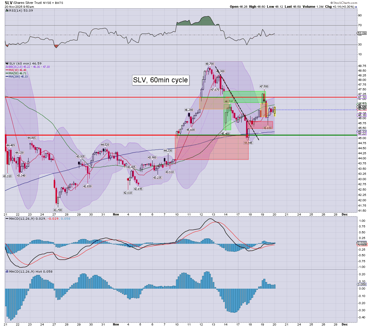 S/t bulls need to see silver >$52, with SLV >$48 to have renewed confidence. I hold to the notion that if you’re bearish equities, you can’t be bullish silver.