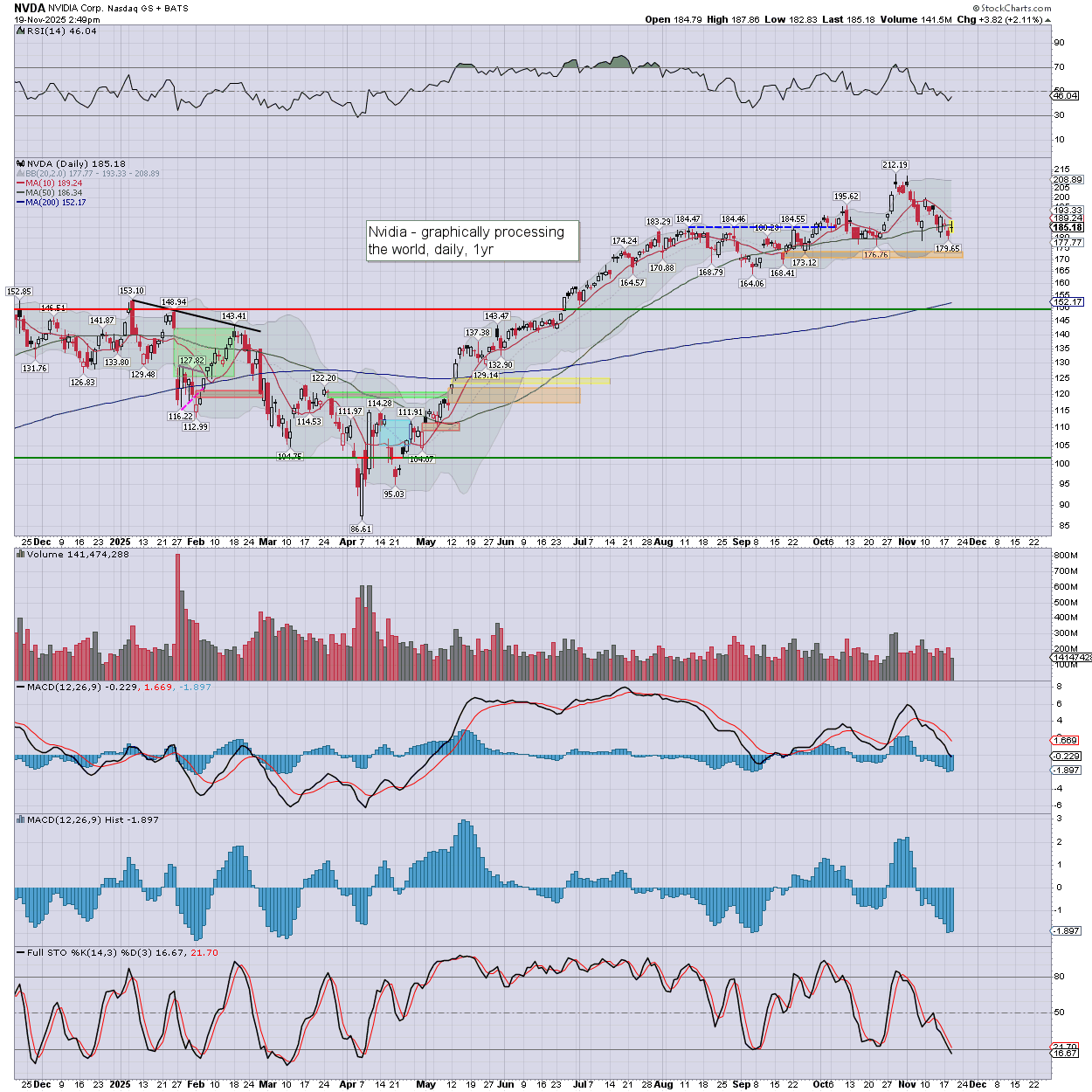Nvidia has earnings in AH, which will garner massive mainstream attention. Earnings should be good, with a fine outlook. I lean to the stock with a net Thursday gain… if settling with a black candle.