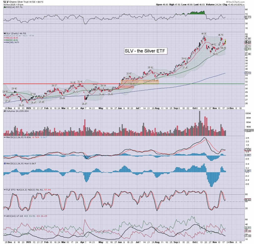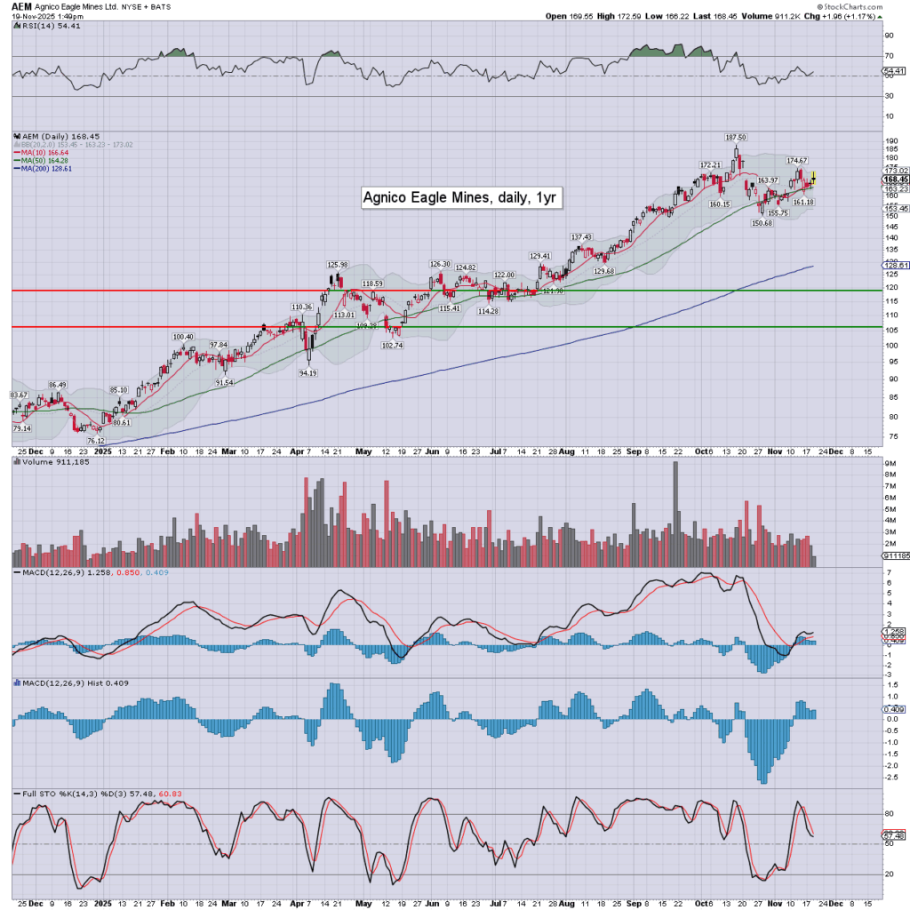 Gold/GLD: printing $4137, but cooling back, currently marginally higher, around $4079. The stronger dollar isn’t helping. A few closes <$4K would merit concern.