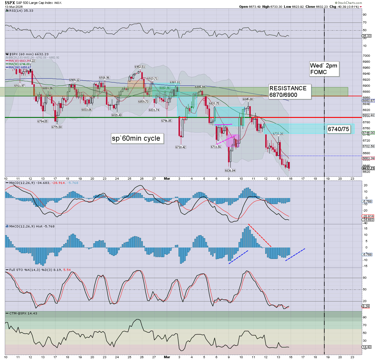 closing hour action: leaning weak to print a new multi-month low of 6623. S/t momentum settled on the low side.